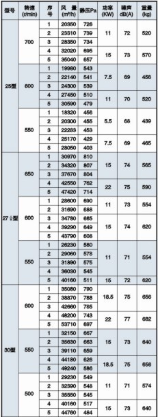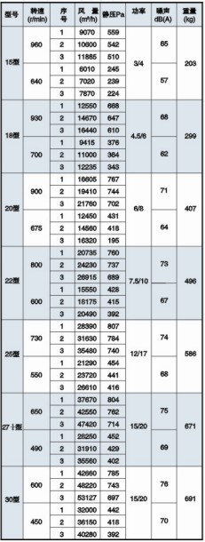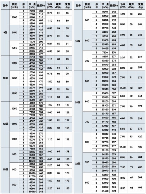 五、HTFC(DT)-Ⅰ型消防通風(fēng)(兩用)低噪聲櫃式離(lí)心通風(fēng)機(jī)性能參數表